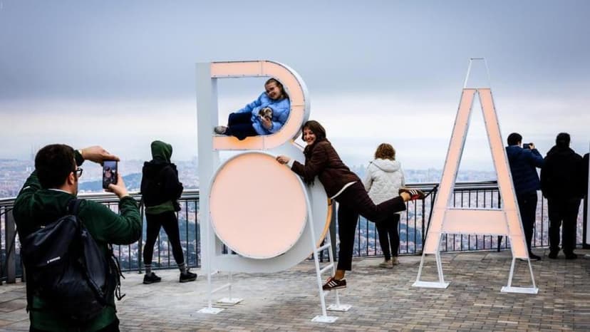 Barcelona boasts its name on Tibidabo and people climb its letters to take photos