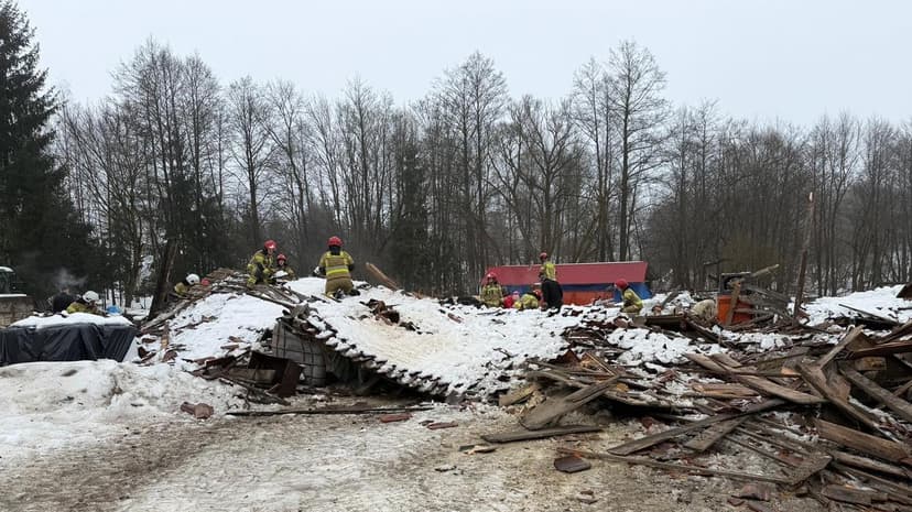 A barn roof in Poland's Warmian-Masurian Voivodeship collapsed on cows, likely due to heavy snow, resulting in the death of four animals.