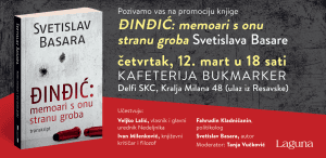 On Thursday, March 12, starting at 6 PM, the new novel by Svetislav Basara, "Đinđić: memoirs from beyond the grave," will be presented at the Bukmarker cafeteria of the Delfi SKC bookstore.