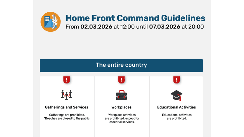 The IDF Home Front Command has extended security guidelines, restricting social gatherings, non-essential workplace activity, and closing schools for nearly another week.