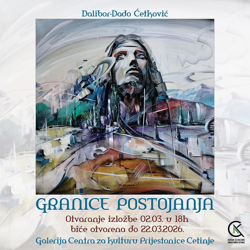 Dalibor Dado Ćetković's solo exhibition titled "Borders of Existence" will open on March 2nd at 6 PM in the gallery of the Center for Culture Prijestonice Cetinje.
