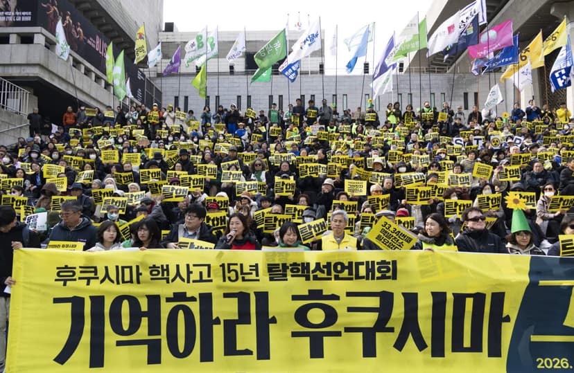 Protesters rally on the 15th anniversary of the Great East Japan Earthquake in Seoul