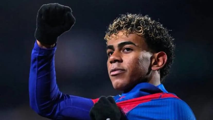 Lamine Yamal reacts after his hat-trick against Villarreal
