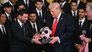 Lionel Messi presented Donald Trump with an Inter jersey with the number 47 and a ball signed by the MLS champions.