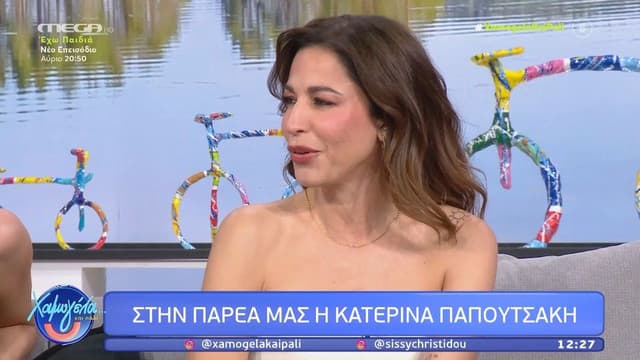 Greek actress Katerina Papoutsaki appeared on the show 'Hamogela kai pali' to discuss her two children and expressed her preference for them not to watch her work.