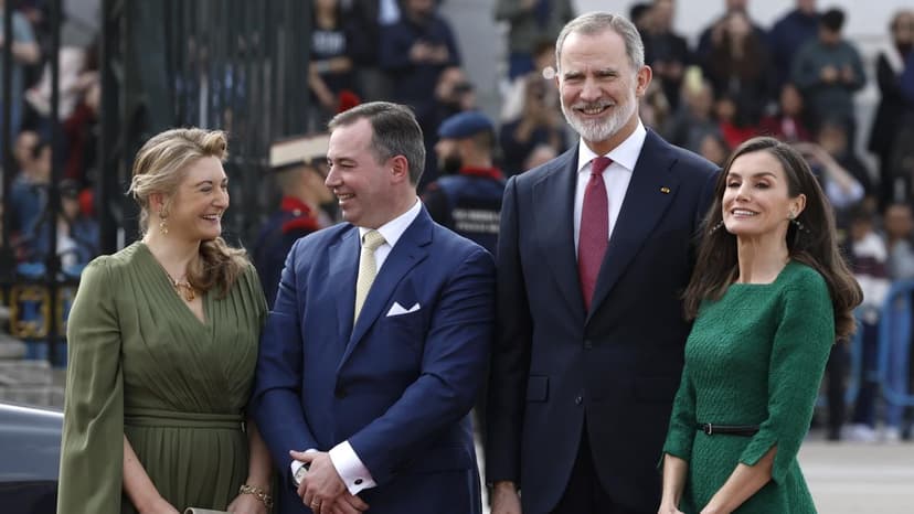 Grand Duke Guillaume and Grand Duchess Stéphanie of Luxembourg are on an official visit to Spain, meeting with King Felipe and Queen Letizia.