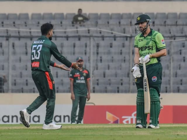 Pakistan batter Salman Ali Agha said Mehidy Hasan Miraz should have shown the sportsman spirit after the Bangladesh captain ended his innings with a controversial run-out in Friday’s One-Day International in Dhaka. Short of his crease at the non-striker’s end, Agha bent down to pick up the ball to return it to the bowler after his teammate Mohammad Rizwan had driven it towards him. Pakistan’s Maaz Sadaqat (C) successfully appeals for leg before wicket (LBW) against Bangladesh’s Litt...