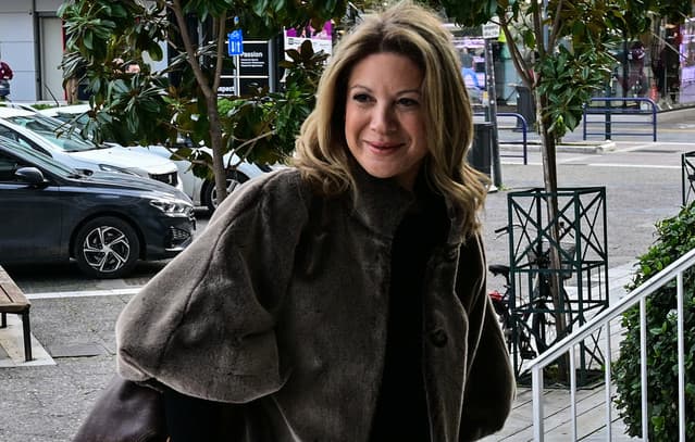 Maria Karystianou, mother of a victim of the Tempi tragedy, attended the trial in Larissa regarding the commercial train's video footage, describing it as a 'parody trial' orchestrated by a malicious boss.