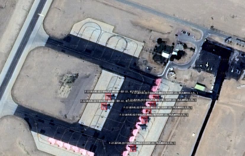 New satellite images released by Chinese intelligence firm MizarVision show the deployment of American F-22 stealth fighter jets at the Israeli Air Force's Ovda airbase, indicating a heightened US military presence in the region.