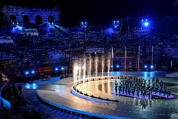 Hundruð manna komu saman á götum Veróna á Norður-Ítalíu í dag, fyrir lokahátíð Ólympíuleikanna, til að mótmæla efnahagslegum og umhverfislegum kostnaði vetrarleikanna.