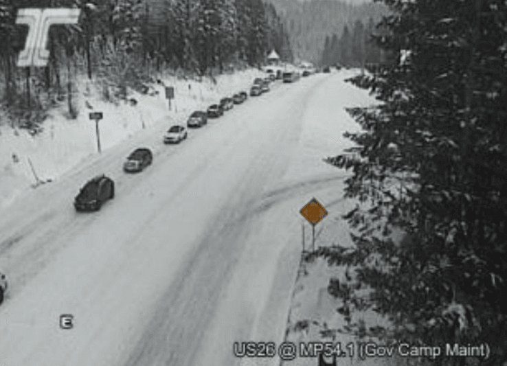 Snow Congestion on US 26 Eastbound Near Mt. Hood