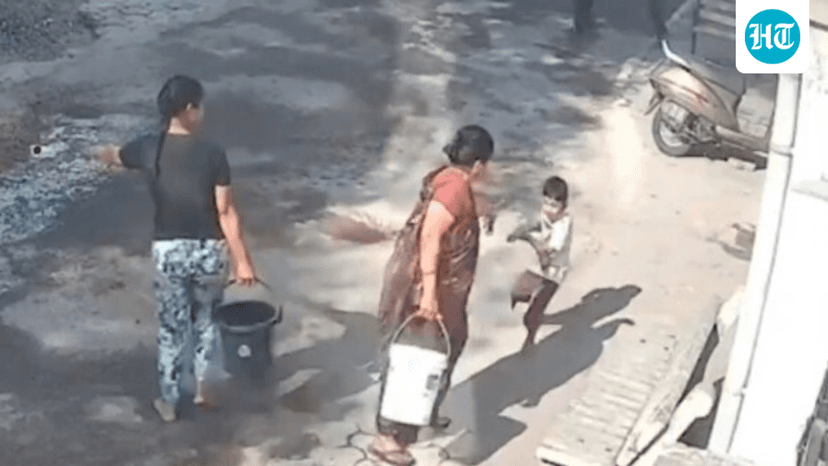 A woman in India was captured on CCTV throwing scalding hot water on her grandson after he sprayed color on her during Holi celebrations.