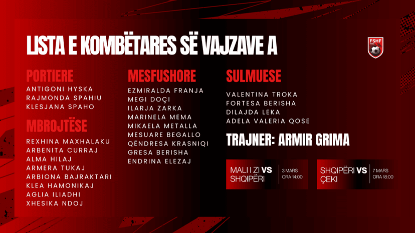 The Albanian women's national football team is gearing up for the 2027 World Cup qualifiers, with coach Armir Grima announcing a 24-player squad for upcoming matches against Montenegro and the Czech Republic in League B, Group B4.