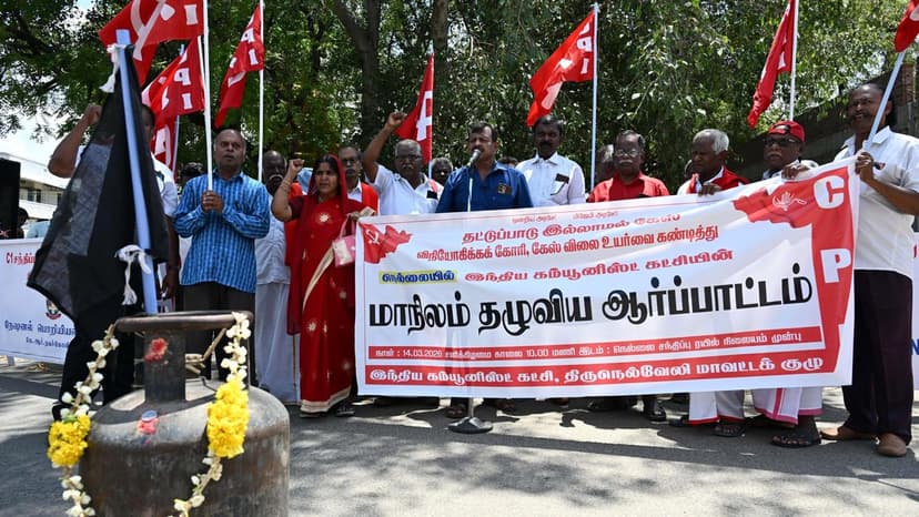 CPI cadre staged a demonstration in Tirunelveli, though the specific reason for the protest was not detailed in the headline.