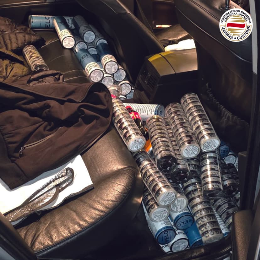 Customs officials intercepted an attempt to smuggle 4,800 packages of nicotine pouches valued at 1.2 million Denars. The suspect was stopped by a mobile customs team inside the country, shortly after entering via the Tabanovce border crossing.