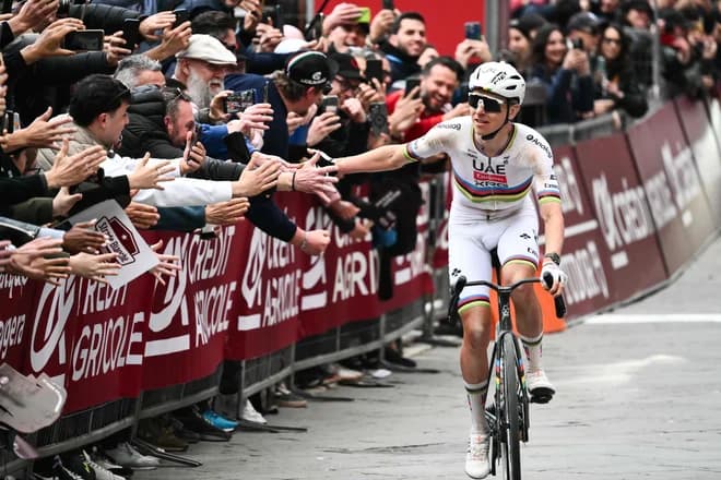 Tadej Pogačar je z veliko prednostjo prišel do zmage na dirki Strade Bianche, lahko pa bi se razpletlo tudi drugače, ob napadu Paul Seixas ni bil daleč.