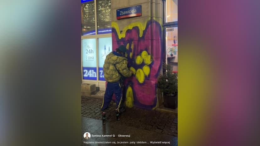 Młody mężczyzna zniszczył elewację zabytkowego budynku w centrum Warszawy, malując bazgroły sprejem. Został nagrany, film trafił do mediów społecznościowych i został szeroko rozpowszechniony. Nagranie