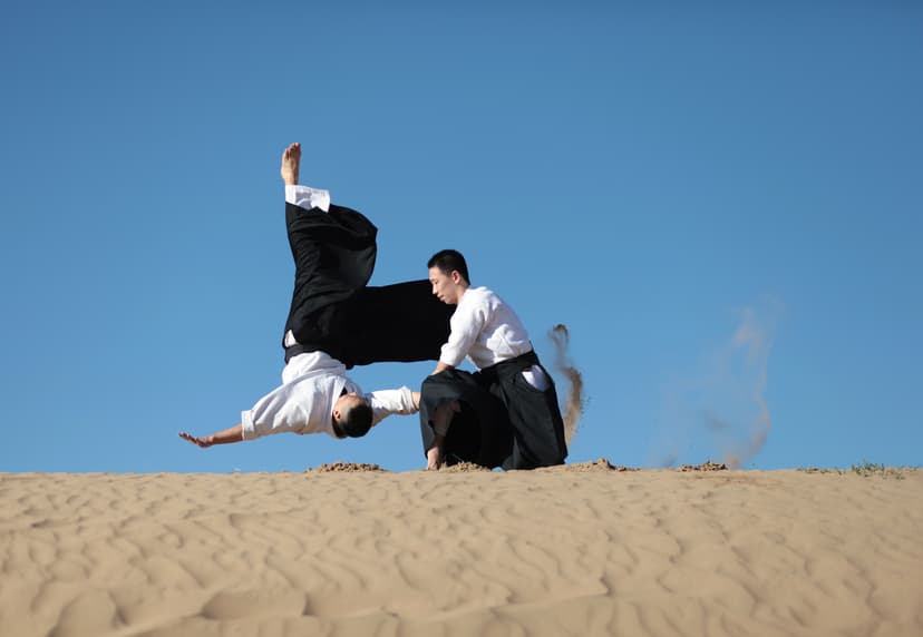 Aikido ist eine japanische Kampfkunst, bei der es darum geht, den Gegner durch fließende Bewegungen und harmonische Energieumlenkung zu kontrollieren.