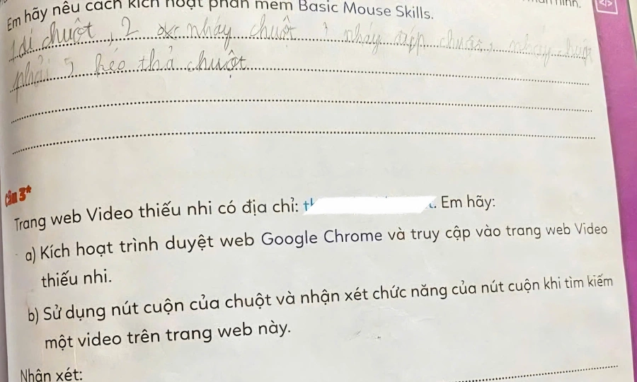 A computing workbook used in Vietnamese primary schools for the past three years has been printing a link to a pornographic website in an exercise meant to teach 8-year-olds how to use a mouse scroll wheel.