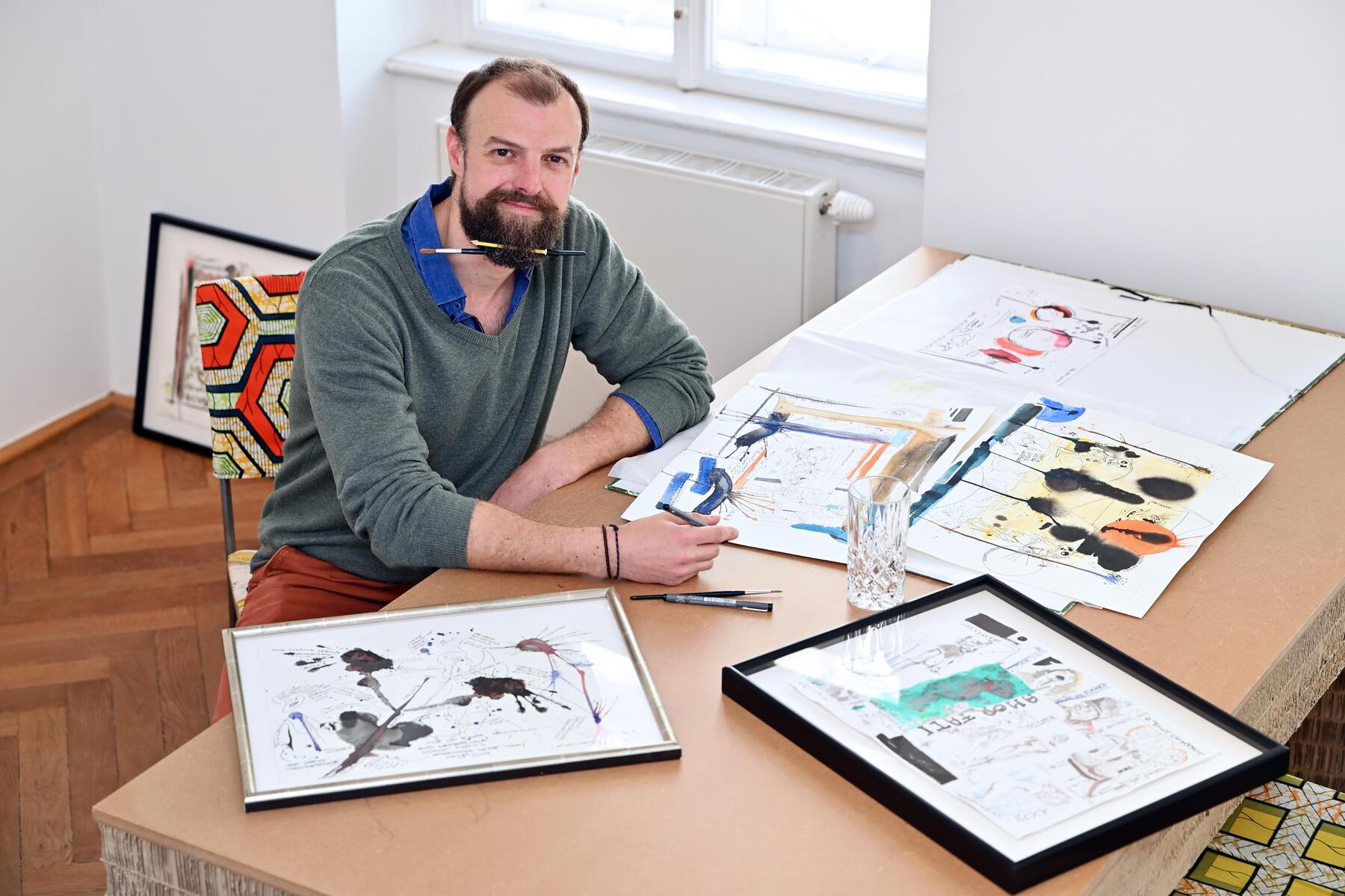 Der Künstler Maximilian Matuschka schafft comichafte Werke, die sich gleichsam der Popkultur und den großen Fragen der Welt widmen. Derzeit stellt er unter dem Motto „Metapop“ im Klubhaus in Währing aus.