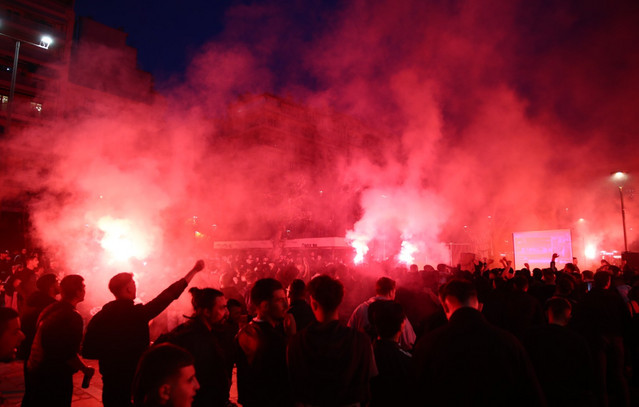 Μπιλμπάο – ΠΑΟΚ: Χαμός στην πλατεία Ναυαρίνου για τον τελικό του FIBA Europe Cup
