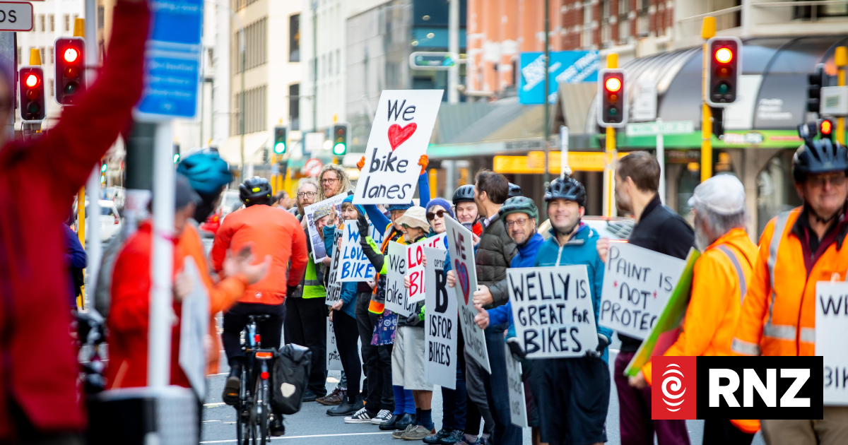 Human chain bike lane fills Wellington street objecting proposed cuts to infrastructure