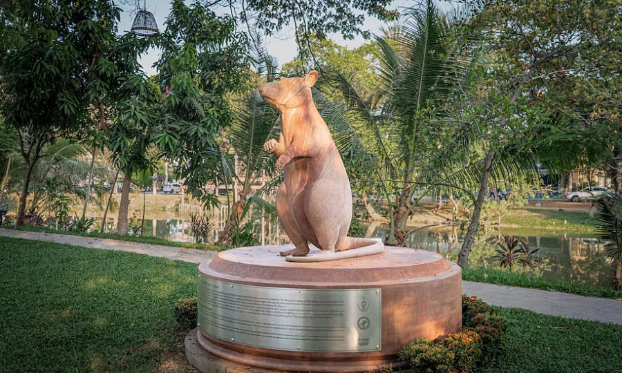A 2.2-meter stone statue of Magawa, an African giant pouched rat that detected 109 explosive devices across Cambodian minefields during a five-year career, was unveiled in Siem Reap on April 3, on the eve of the International Day for Mine Awareness.