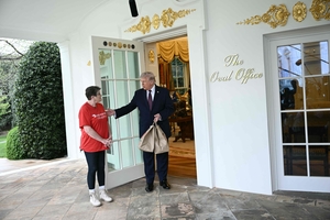 WASHINGTON (AP) -- President Donald Trump had two bags of McDonald's delivered to the Oval Office on Monday by a DoorDash driver he tipped $100, using his favorite food and a reality TV flourish to promote a tax policy he says has meant big rebates for Americans who earn gratuities. Sharon Simmons, dressed in a "DoorDash Grandma" T-shirt, walked up to the Oval Office's exterior door and knocked as media cameras rolled. Trump popped out and said, "Hello. Nice to see you," before proclaiming, "Loo