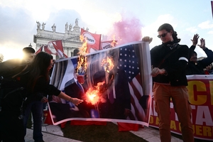 Protesters burn photos of Trump, Meloni