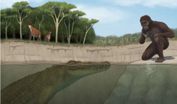 Paleontologists have identified a new species of giant prehistoric crocodile, estimated to weigh up to half a ton and measure 4.5 meters long, which likely preyed on early human ancestors.