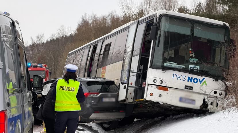 A PKS bus collided with a passenger car on the road between Stara Łomża and Zosin in Poland's Podlaskie region, resulting in one person being hospitalized.