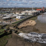 A two-meter long crocodile was sighted sunbathing along the banks of Sungai Padas in Beaufort, Malaysia, prompting warnings for riverbank anglers.