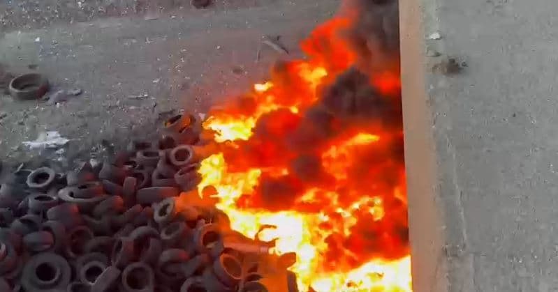 Tires Burn Under Milot Bridge, Albania Causing Air Pollution