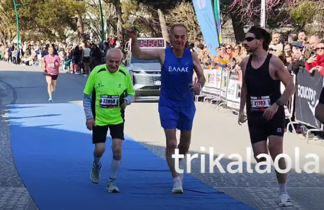 Αποθέωση για τον 90χρονο δρομέα στα Τρίκαλα – Τερμάτισε για μια ακόμα χρονιά στον ημιμαραθώνιο