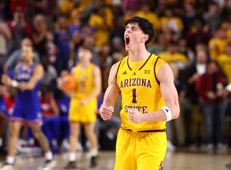 Fans spilled out of the stands onto the court, jumping and shouting in celebration of Arizona State's massive upset.