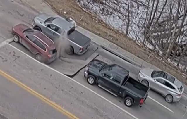 Sinkhole Swallows Two Cars on Omaha, Nebraska Road