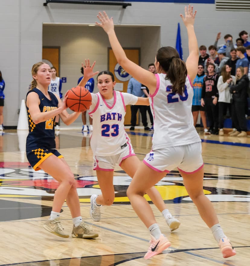 The Pewamo-Westphalia girls basketball team secured a share of the CMAC crown by defeating Bath 49-24, extending their league winning streak to 40 games.