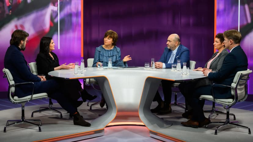 A German TV program, Maybrit Illner, focuses on the Iran war for the second time, providing background information and appealing for support for the Iranian people.