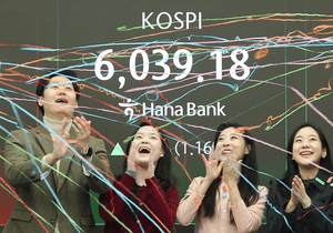 Seoul shares opened higher Wednesday, briefly breaching a new historic landmark of 6,000 amid an extended rally in technology stocks. The benchmark Korea Composite Stock Price Index rose 26.73 points, or 0.45 percent, to 5,996.37 in the first 15 minutes of trading. Shortly after the opening bell, the KOSPI briefly breached the 6,000-point mark, just one month after landing in the 5,000-point territory. Overnight, the Dow Jones Industrial Average rose 0.76 percent, while the tech-heavy Nasdaq com