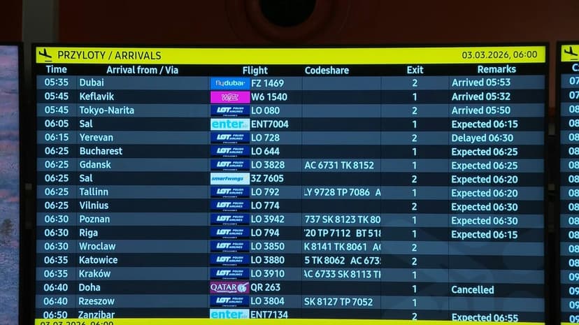 We wtorek rano na lotnisku w Warszawie wylądował samolot z Dubaju. Kolejny rejs z tego kierunku został jednak odwołany, a lot z Dubaju do Poznania ma kilkugodzinne opóźnienie.