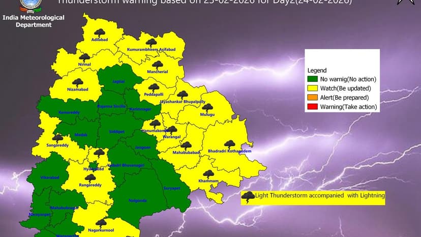 Thunderstorm Forecast for 17 Telangana Districts on February 24